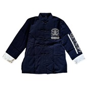 ネイビーのボディに白でプリント、左袖、左腰、左胸にプリント。